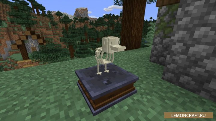 Мод на добычу останков Fossil дает вам возможность осуществлять добычу окаменелых останков, из которых вы сможете получить скелеты для декоративного оформления ваших помещений. Для создания скелета вам нужно создать новый блок и заспавнить археолога. Далее путем обмена добытых останков у археолога вы получите готовые скелеты.